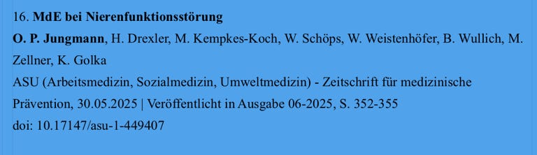 In den letzten Jahren habe ich an einigen wegweisenden Publikationen zu Themen wie Begutachtung von beruflich bedingtem Blasenkrebs, erektiler Dysfunktion und urologischen Querschnittsfolgen teils federführend mitgearbeitet, ebenso am urologischen Teil des Kursbuchs zur Begutachtung.